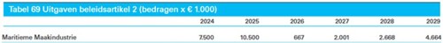 Begroting: De Maritieme Maakindustrie richt zich op het ondersteunen maar de Maritieme sector via het maritiem innovatieprogramma. Dit betreft dekking voor het maritiem innovatieprogramma zoals toegezegd in de sectoragenda Maritieme Maakindustrie aan de Kamer door de ministers van EZ, IenW en de staatssecretaris van Defensie.